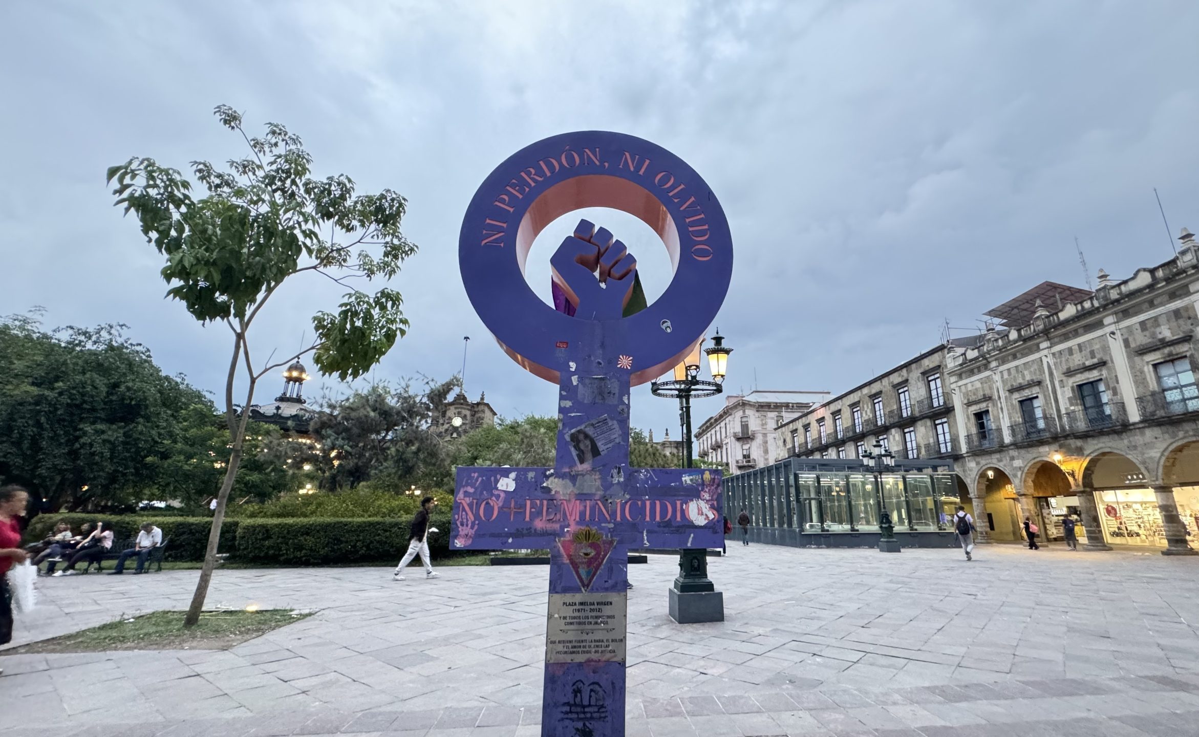El grupo de colectivas feministas también rebautizaron a Plaza de Armas como Plaza Imelda Virgen, mujer jalisciense a la que su pareja le arrebató la vida en 2012, al contratar a dos hombres que la violaron y asesinaron.